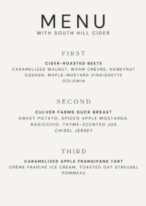 South Hill Cider – MENU – Courtney Lampman